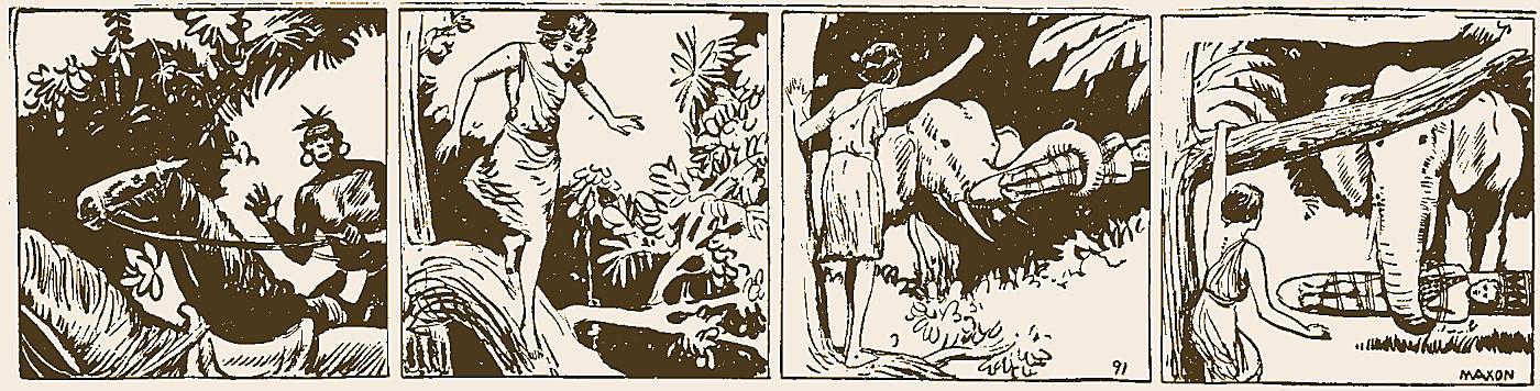 grote olifant (Tantor) in zicht, die de paal, waaraan Korak