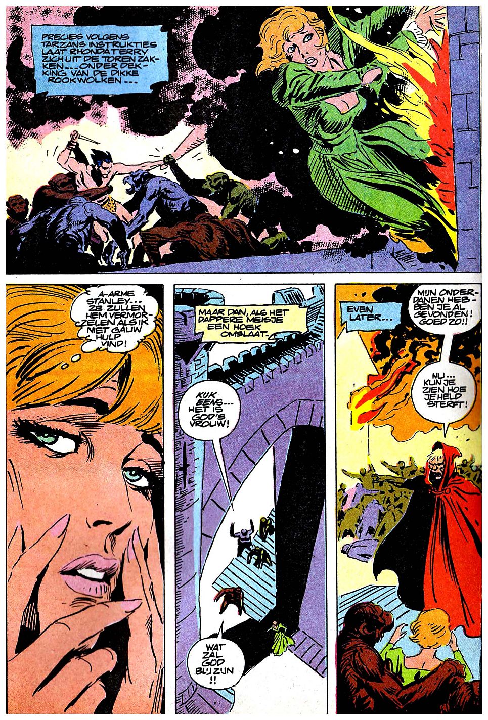 ZAKKEN... ONDER DEKKING VAN DE DIKKE ROOKWOLKEN... A-ARME STANLEY... ZE ZULLEN HEM VERMORZELEN ALS IK NIET GAUW HULP VIND! MAAR DAN, ALS HET DAPPERE MEISJE EEN HOEK OMSLAAT... KIJK EENS... HET IS GOD'S VROUW! WAT ZAL GOD BLIJ ZIJN!! EVEN LATER... MIJN ONDERDANEN HEBBEN JE AL GEVONDEN! GOED ZO!! NU... KUN JE ZIEN HOE JE HELD STERFT! |