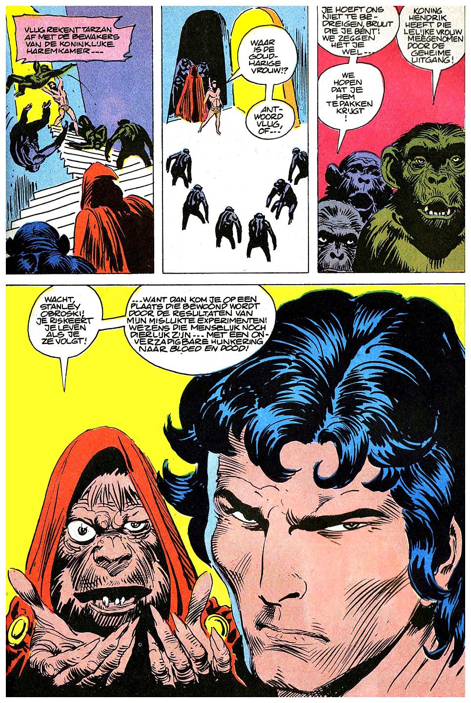 MET DE BEWAKERS VAN DE KONINKLIJKE HAREMKAMER... WAAR IS DE GOUDHARIGE VROUW!? ANTWOORD VLUG, OF... JE HOEFT ONS NIET TE BEDREIGEN, BRUUT DIE JE BENT! WE ZEGGEN HET HET WEL... KONING HENDRIK HEEFT DIE LELIJKE VROUW MEEGENOMEN DOOR DE GEHEIME UITGANG! WE HOPEN DAT JE HEM TE PAKKEN KRIJGT! WACHT, STANLEY OBROSKI! JE RISKEERT JE LEVEN ALS JE ZE VOLGT! ...WANT DAN KOM JE OP EEN PLAATS DIE BEWOOND WORDT DOOR DE RESULTATEN VAN MIJN MISLUKTE EXPERIMENTEN! WEZENS DIE MENSELIJK NOCH DIERLIJK ZIJN... MET EEN OVERZADIGBARE HUNKERING NAAR BLOED EN DOOD! |