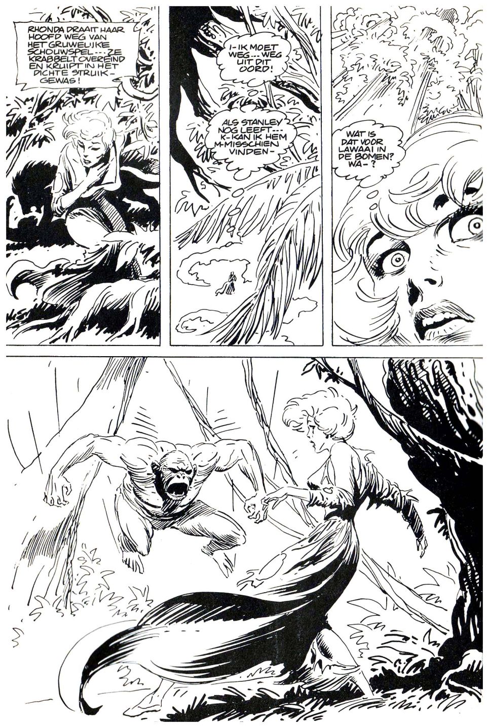 OVEREIND EN KRUIPT IN HET DICHTE STRUIKGEWAS! I-IK MOET WEG... WEG UIT DIT OORD! ALS STANLEY NOG LEEFT... K-KAN IK HEM M-MISSCHIEN VINDEN - WAT IS DAT VOOR LAWAAI IN DE BOMEN? WA-? |
