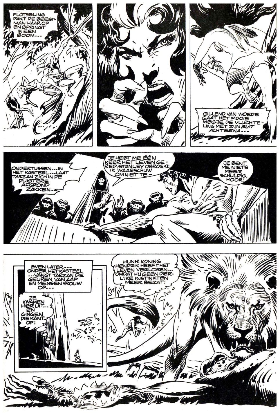 BEESTMAN HAAR OP EN SPRINGT IN EEN BOOM... GILLEND VAN WOEDE GAAT HET MOOIE MEISJE DE VLUCHTELING MET ZIJN BUIT ACHTERNA... ONDERTUSSEN... IN HET KASTEEL... LAAT TARZAN ZICH IN DE DUISTERE AFGROND ZAKKEN... JE HEBT ME ÉÉN KEER HET LEVEN GERED, STANLEY OBROSKI! IK WAARSCHUW OM NIET TE - JE BENT ME NIETS MEER SCHULDIG, HOOR! EVEN LATER... ONDER HET KASTEEL... VANGT TARZAN DE GEUREN VAN AAP EN MENSENVROUW OP... ZE KWAMEN HIER UIT... EN GINGEN DIE KANT OP! HUNH! KONING HENDRIK HEEFT HET LEVEN VERLOREN... OMDAT HIJ GEEN DIERLIJKE INSTINKTEN MEER BEZAT! |