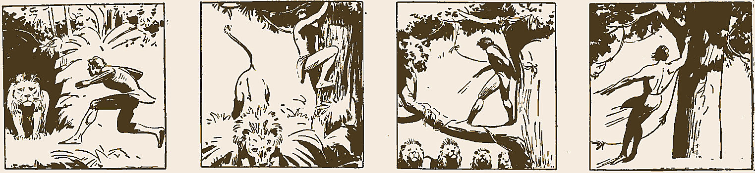 troef, die Tarzan uitspeelde. De leeuw draalde zich om en
