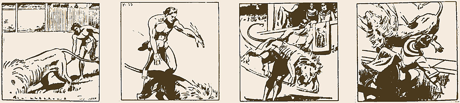 toeschouwen dachten, dat Tarzan den leeuw wilde doden, maar