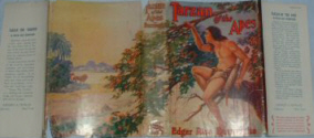 Of these 3 states, it has been confirmed that both the 2nd & 3rd states were published for the Canadian market by "McClelland, Goodchild and Stewart" by simply tipping in a new title page bearing their name into the American first edition. Otherwise they are identical in every way to include the Acorn image on the spine of the 2nd state edition; as such, the Canadian printings would be considered a "Mixed edition". McClelland, Goodchild and Stewart also distributed a few other Tarzan titles by inserting a new title page into the American first edition, to include " The Return of Tarzan". A mysterious 4th state surfaced in Dr. Henry Hein's 1964 book, "A Golden Anniversary Bibliography of Edgar Rice Burroughs". The 4th state is said to be identical to the 3rd state but bound in Orange or Green cloth. In his book he quotes one who owned the orange cover as saying it was a "hideous shade of orange". Dr Hein's also said three individuals confirmed the existence of a green cover "Tarzan of the Apes". Over the years this information has been included in other bibliographies as well using Mr. Hein's book as its sole reference. |