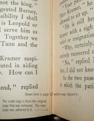 print-run of all three states was 5,000 copies. The book below is of the second state as page 92 has been tipped in and page 12 still shows errors in the text as shown in the photos to the right. |