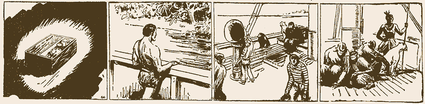 dan — huiswaarts! De aapman wekte de bemanning en gaf orders