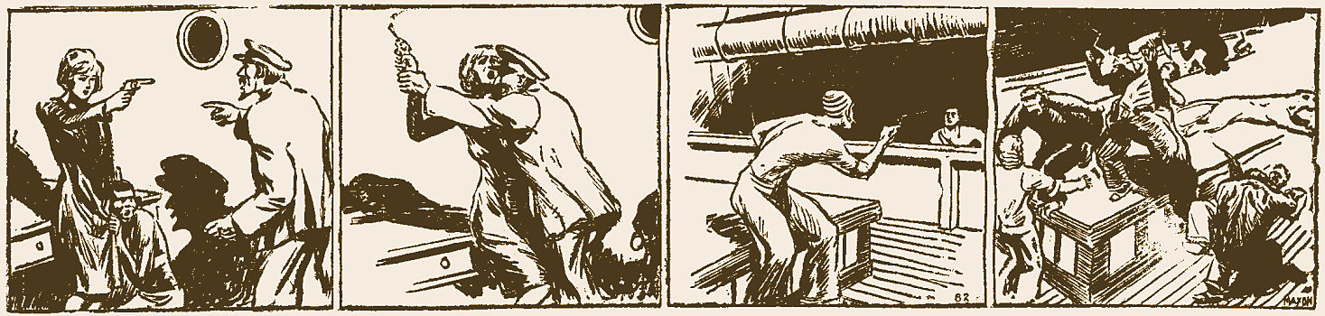 beesten verdween de moed der matrozen. Zij, die revolvers
