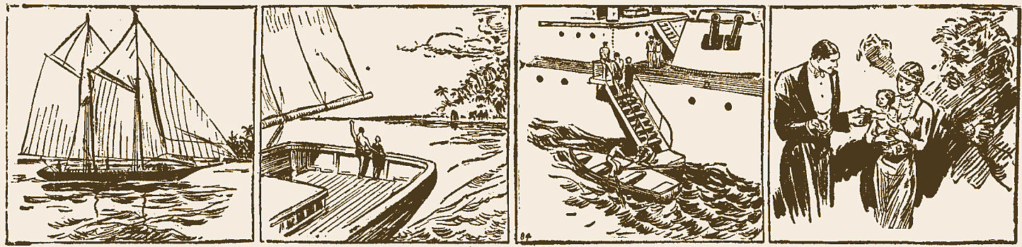 parelschoener koers naar het Jungle-eiland. Daar namen ze