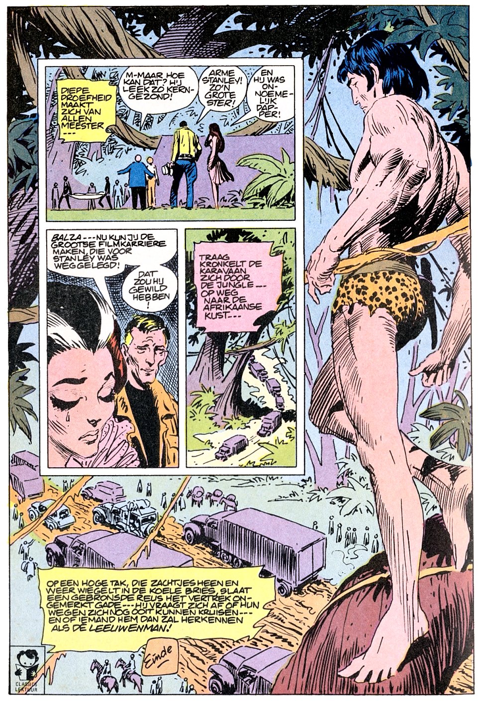 ZICH VAN ALLEN MEESTER... M-MAAR HOE KAN DAT? HIJ LEEK ZO KERNGEZOND! ARME STANLEY! ZO'N GROTE STER! EN HIJ WAS ONNOEMELIJK DAPPER! BALZA... NU KUN JIJ DE GROOTSE FILMKARRIERE MAKEN, DIE VOOR STANLEY WAS WEGGELEGD! DAT ZOU HIJ GEWILD HEBBEN! TRAAG KRONKELT DE KARAVAAN ZICH DOOR DE JUNGLE... OP WEG NAAR DE AFRIKAANSE KUST... OP EEN HOGE TAK, DIE ZACHTJES HEEN EN WEER WIEGELT IN DE KOELE BRIES, SLAAT EEN GEBRONSDE REUS HET VERTREK ONGEMERKT GADE... HIJ VRAAGT ZICH AF OF HUN WEGEN ZICH NOG OOIT KUNNEN KRUISEN... EN OF IEMAND HEM DAN ZAL HERKENNEN ALS DE LEEUWENMAN! EINDE CLASSICS LEKTUUR |